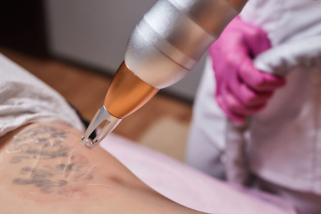 - Les réglages du laser sont adaptés à la couleur, à la taille et à l’ancienneté du tatouage.